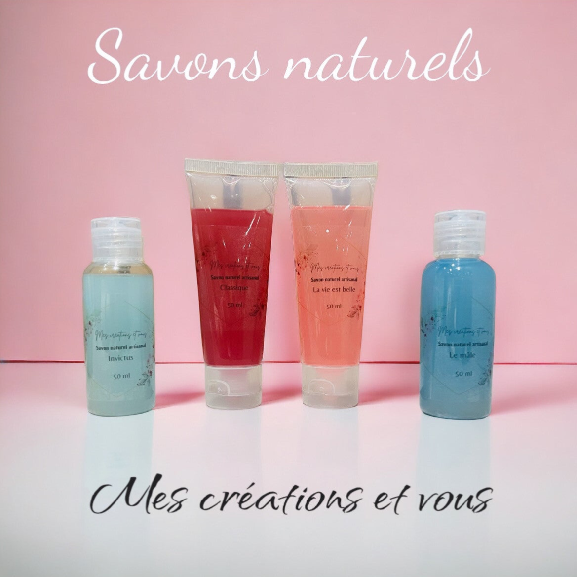 Je vous propose des savons liquides naturels de 50ml donc en petit format pour commencer!